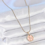316L Çelik Gold Renk Zincir Pembe Mineli Çiçek İşlemeli Portre Model Kadın Kolye