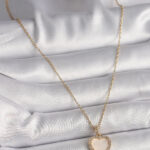 316L Çelik Gold Renk Zincir Zirkon Taşlı Beyaz Mineli Kalp Model Kadın Kolye