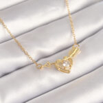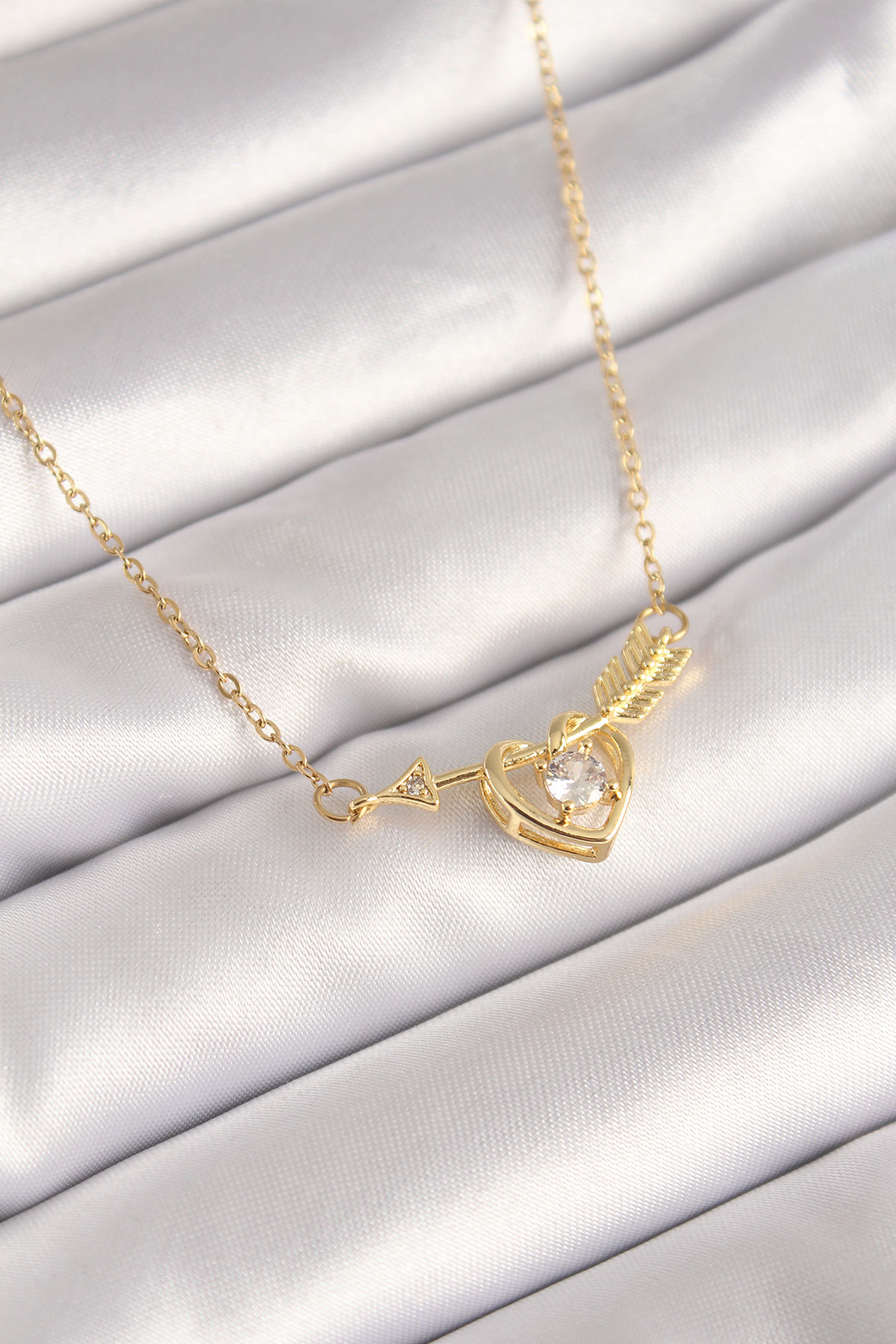 316L Çelik Gold Renk Zincir Zirkon Taşlı Ok Kalp Model Kadın Kolye