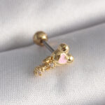 316L Çelik Gold Renk Zirkon Taş Detay Pembe Kalp İşleme Tragus Piercing