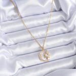 316L Çelik Gold Renk Zirkon Taşlı Ay Yıldız Model Kadın Kolye