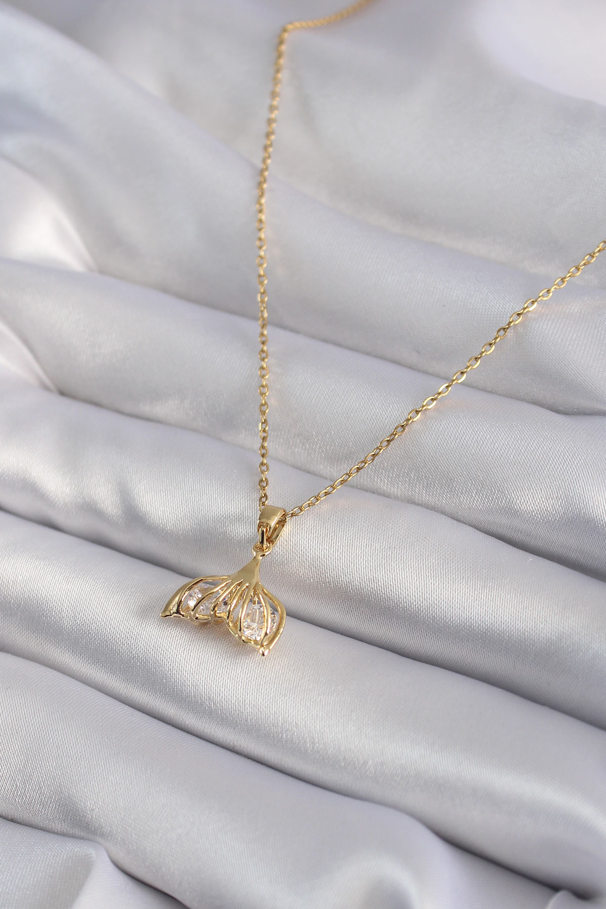 316L Çelik Gold Renk Zirkon Taşlı Balık Kuyruğu Model Kadın Kolye