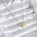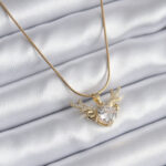316L Çelik Gold Renk Zirkon Taşlı Boynuz Model Kadın Kolye