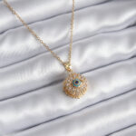 316L Çelik Gold Renk Zirkon Taşlı Göz Model Kadın Kolye