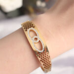 316L Çelik Gold Renk Zirkon Taşlı Kadın Kelepçe Bilezik