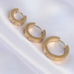 316L Çelik Gold Renk Zirkon Taşlı Model 3lü Halka Küpe
