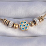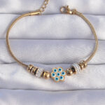 316L Çelik Gold Renk Zirkon Taşlı Nazarlı Çiçek Tasarımlı Bileklik