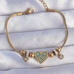 316L Çelik Gold Renk Zirkon Taşlı Nazarlı Kalp Tasarımlı Bileklik