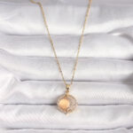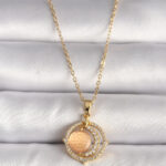 316L Çelik Gold Renk Zirkon Taşlı Turuncu Sedefli Hilal Model Kadın Kolye