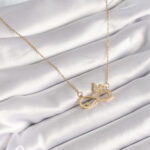 316L Çelik Gold Renk Zirkon Zincir Taşı Sonsuzluk Kelebek Model Kadın Kolye