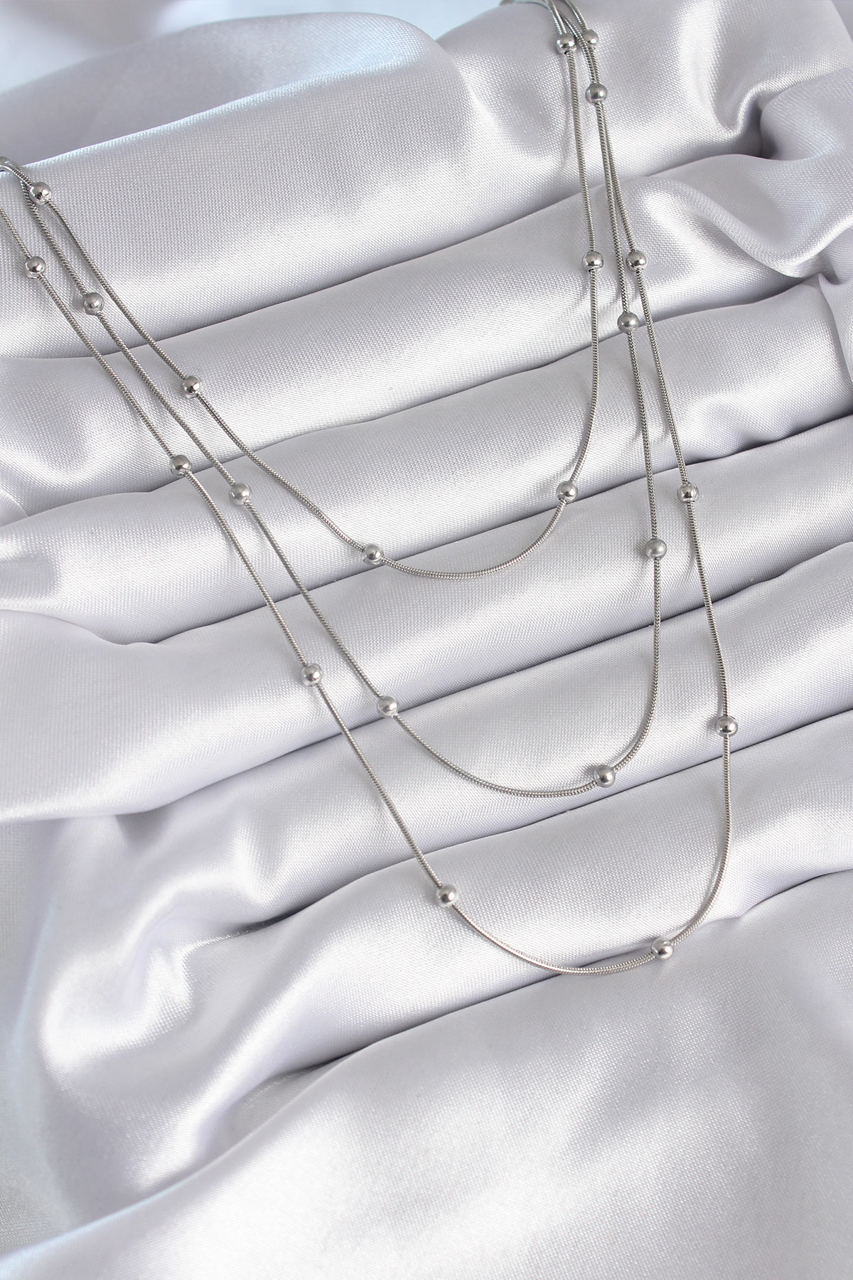 316L Çelik Gümüş Renk 3’lü Topçuk Detay Kadın Kolye