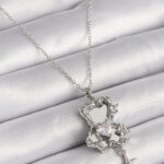 316L Çelik Gümüş Renk Ayna Ayıcık Model Zirkon Taşlı Kalp Detay Kadın Kolye