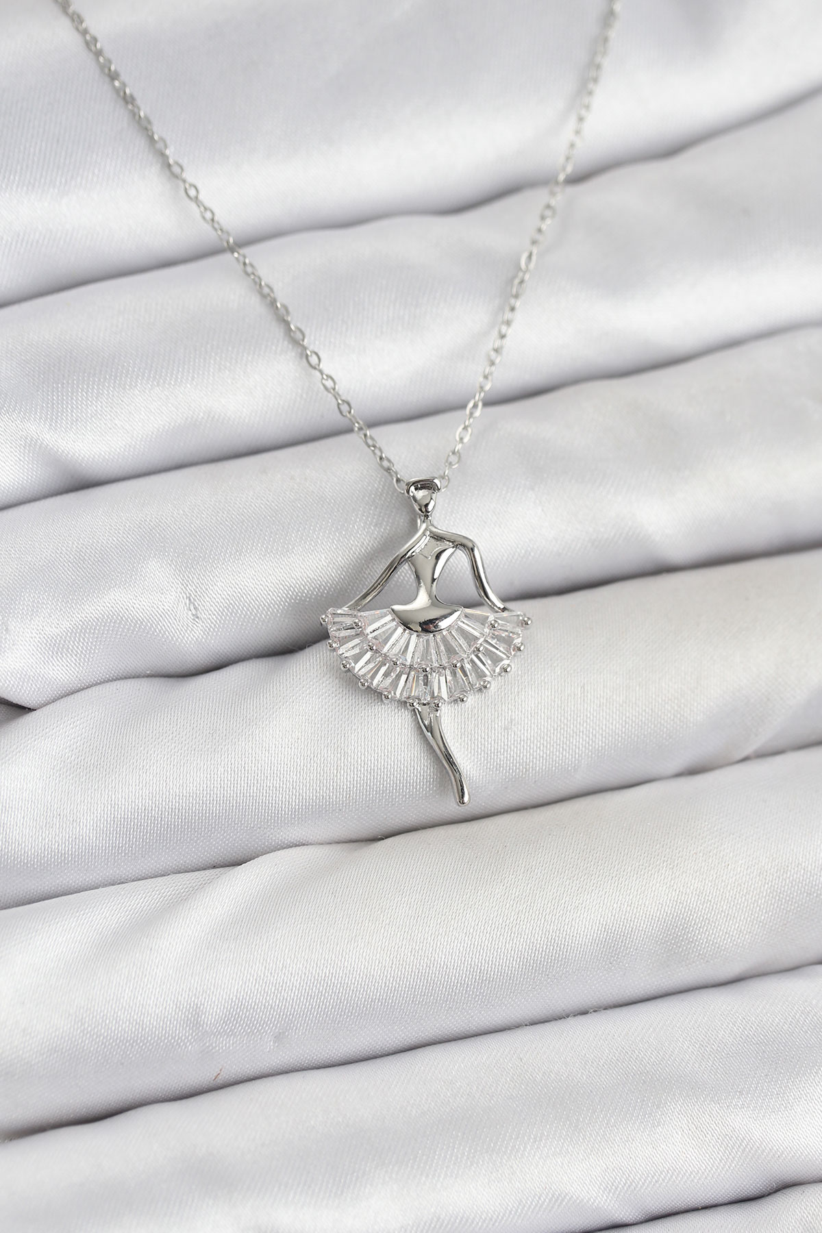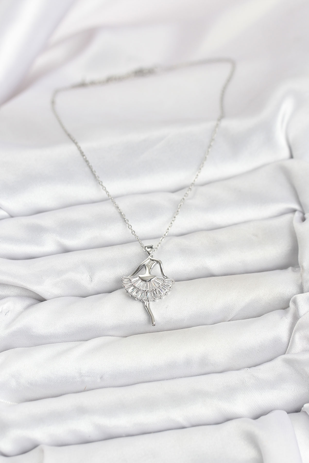 316L Çelik Gümüş Renk Balerin Model Kadın Kolye