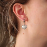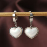 316L Çelik Gümüş Renk Beyaz Bombeli Kalp Küpe