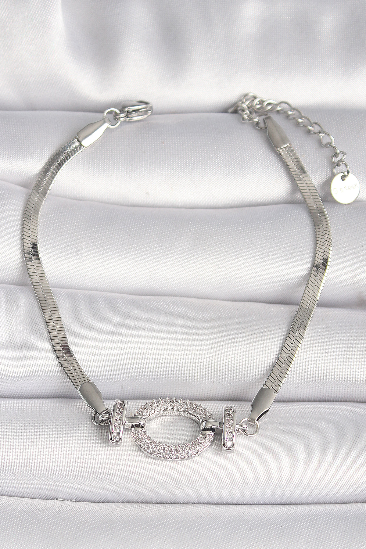 316L Çelik Gümüş Renk İtalyan Zincir Model Zirkon Taşlı Halka Figür Kadın Bileklik
