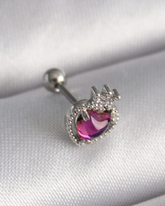 316L Çelik Gümüş Renk Kırmızı Mineli Kalp Tragus Piercing