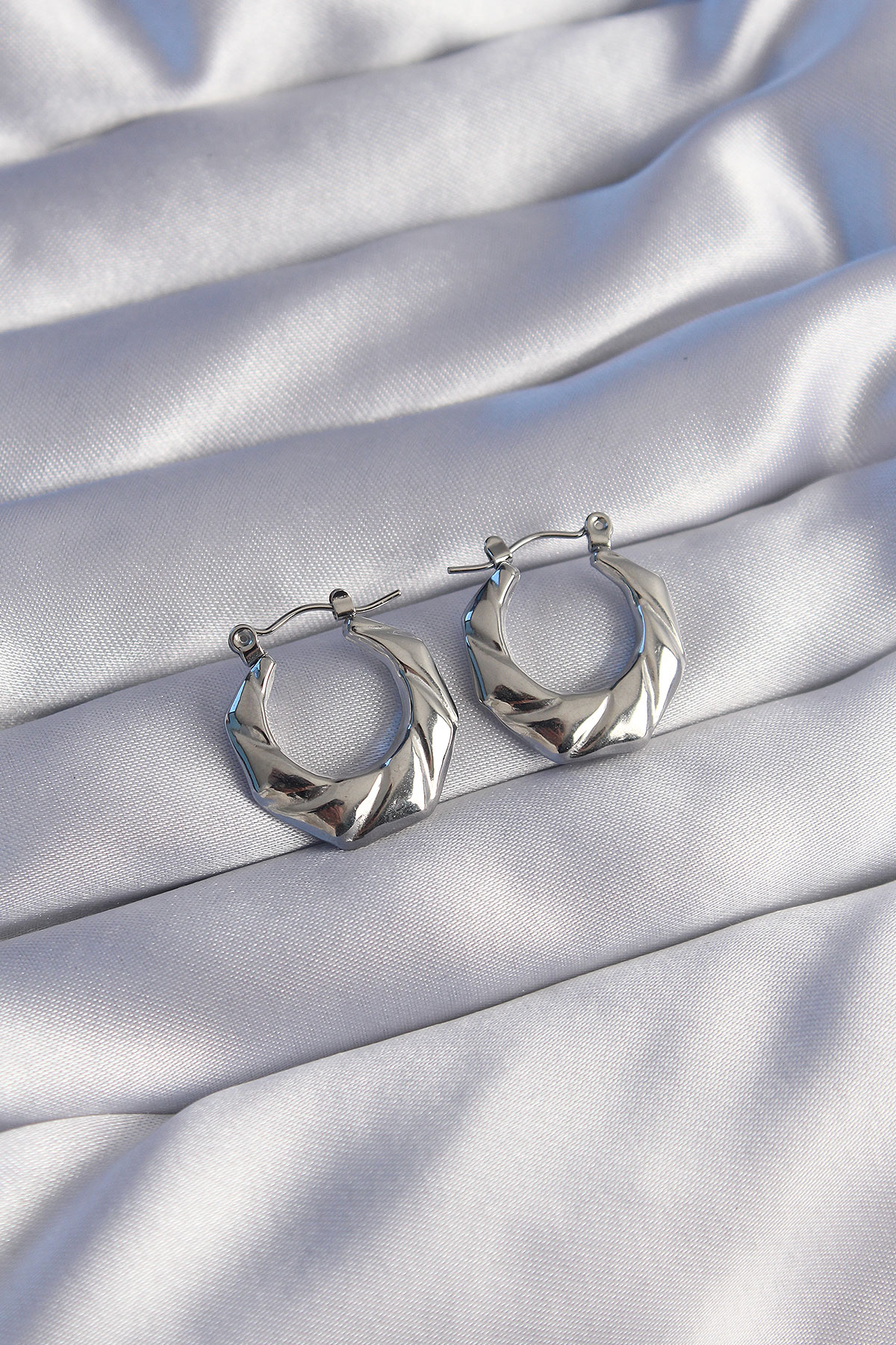 316L Çelik Gümüş Renk Kıvrımlı Görünüm Geometrik Model Küpe