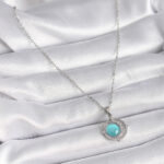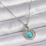 316L Çelik Gümüş Renk Mavi Sedefli Hilal Model Kadın Kolye