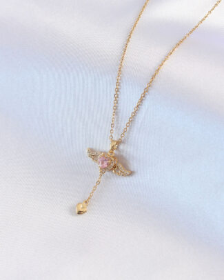 316L Çelik Gümüş Renk Pembe Zirkon Taşlı Taç Kalp Portre Model Kadın Kole