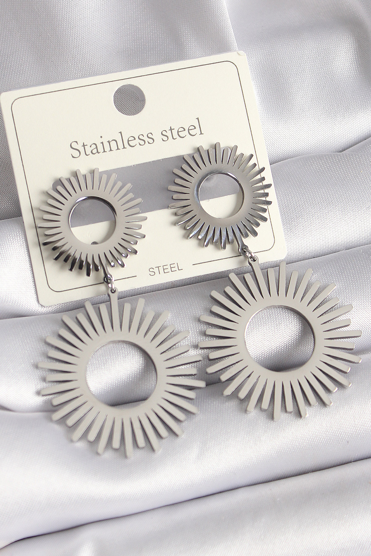 316L Çelik Gümüş Renk Sallantı Güneş Model Kadın Küpe