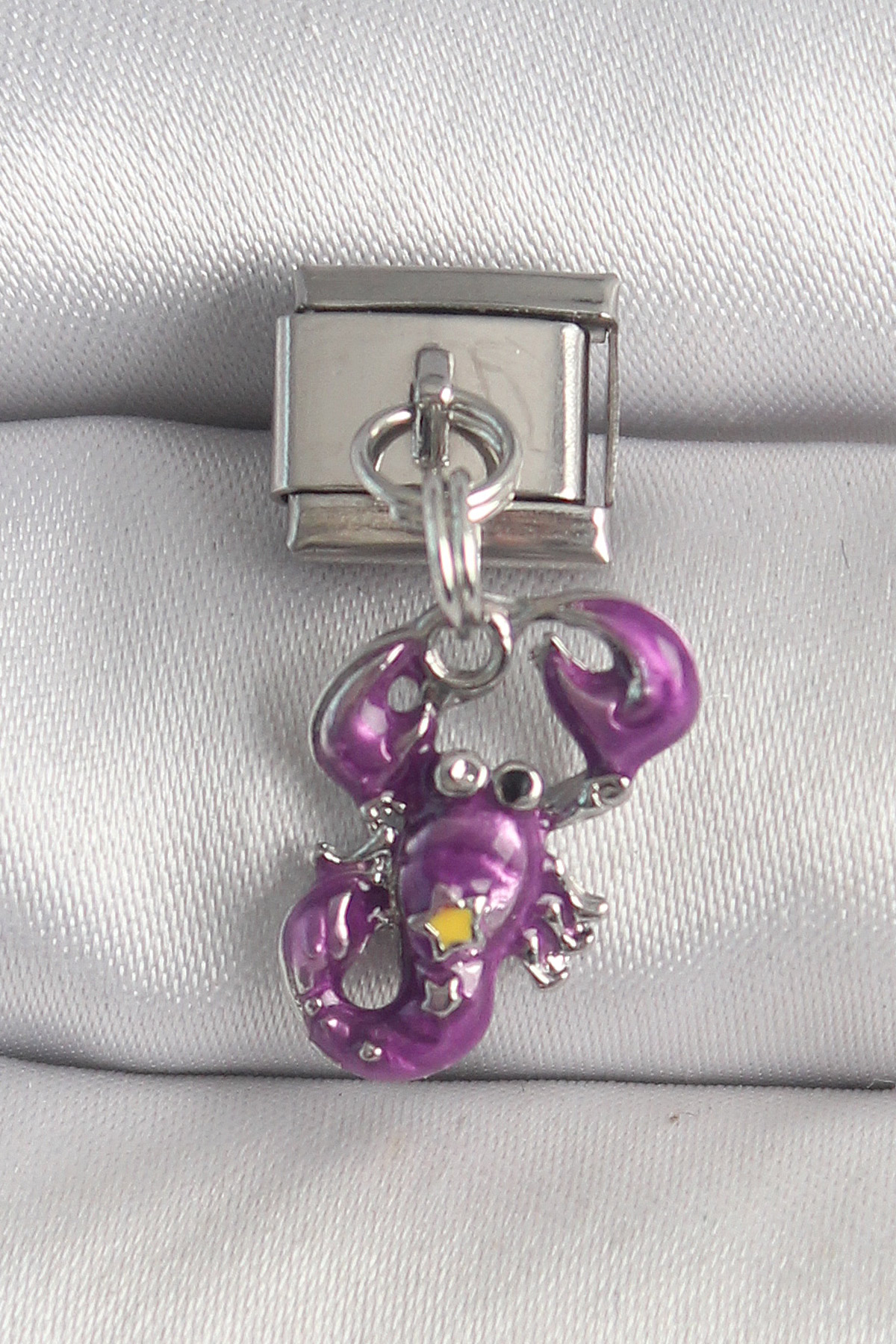316L Çelik Gümüş Renk Sallantı Mor Yengeç Model Yıldız Detay Nomination Charm