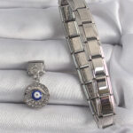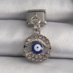 316L Çelik Gümüş Renk Sallantı Zirkon Taşlı Göz Model Nazar Boncuk Detay Nomination Charm