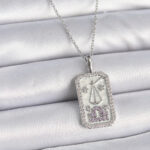 316L Çelik Gümüş Renk Terazi Burcu Zirkon Taşlı Kadın Kolye