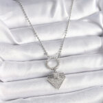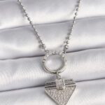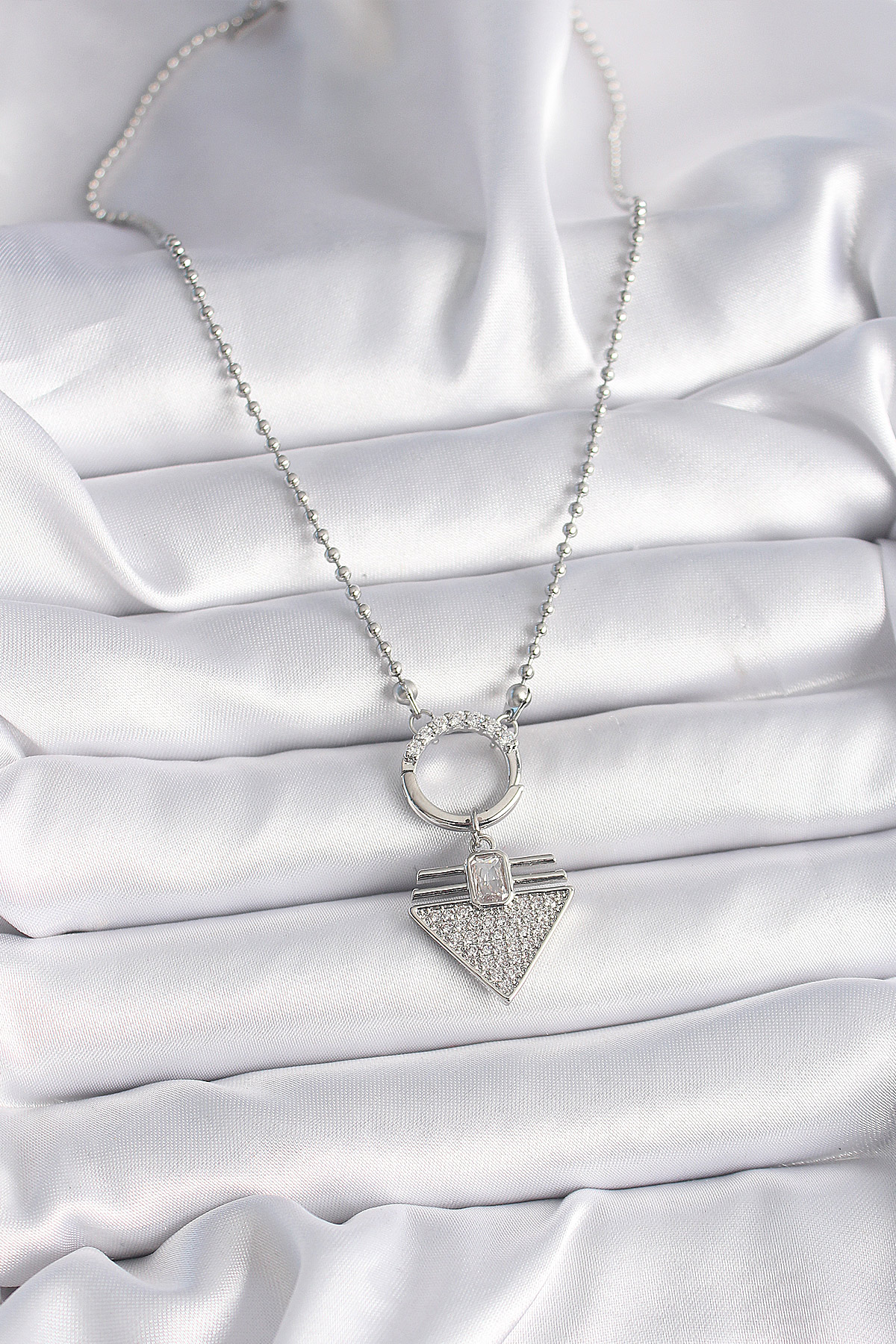 316L Çelik Gümüş Renk Topçuk Zincir Zirkon Taşlı Üçgen Model Kadın Kolye