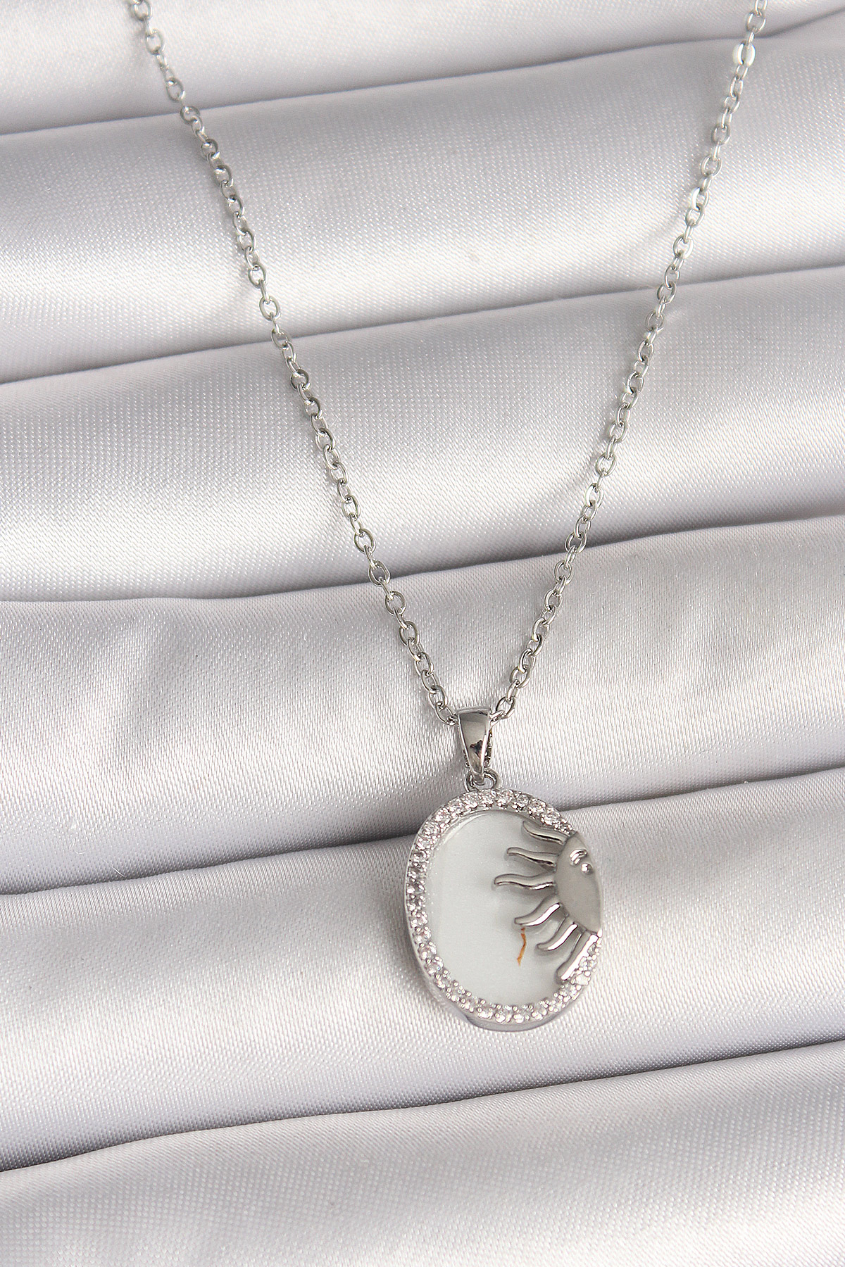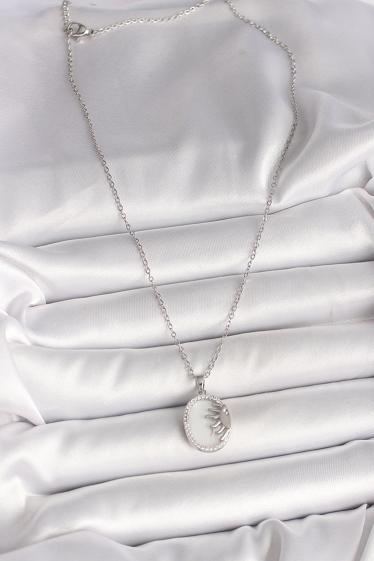316L Çelik Gümüş Renk Zincir Beyaz Mineli Gün Batımı Model Zirkon Taş Detaylı Kadın Kolye
