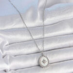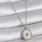 316L Çelik Gümüş Renk Zincir Beyaz Mineli Kutup Yıldız İşlemeli Madalyon Model Kadın Kolye