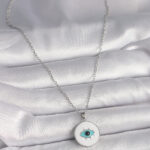 316L Çelik Gümüş Renk Zincir Beyaz Mineli Turkuaz Göz İşleme Model Kadın Kolye