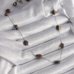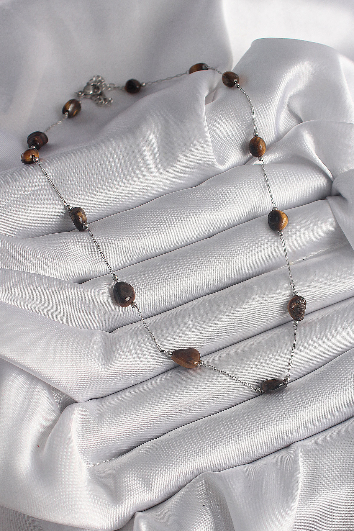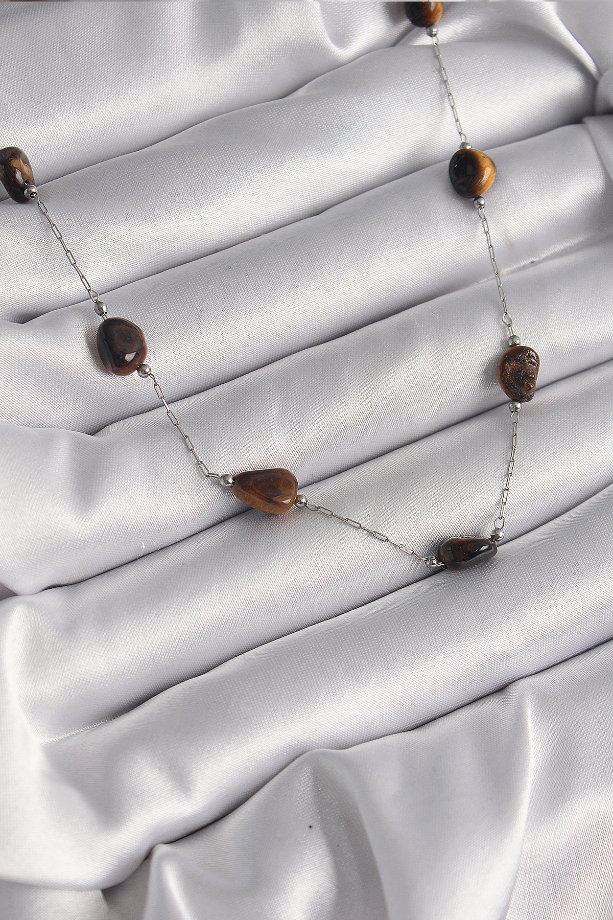 316L Çelik Gümüş Renk Zincir Kahverengi Doğaltaş Model Kadın Kolye