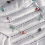 316L Çelik Gümüş Renk Zincir Renkli Doğaltaş Model Kadın Kolye