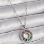 316L Çelik Gümüş Renk Zincir Renkli Zirkon Taşlı Madalyon Model Kadın Kolye