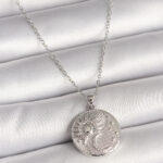 316L Çelik Gümüş Renk Zincir Zirkon Taşlı Ay Güneş İşlemeli Madalyon Model Kadın Kolye