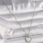 316L Çelik Gümüş Renk Zincir Zirkon Taşlı Beyaz Mineli Kalp Model Kadın Kolye