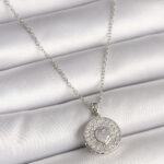 316L Çelik Gümüş Renk Zincir Zirkon Taşlı Kalp İşlemeli Madalyon Model Kadın Kolye