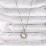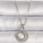 316L Çelik Gümüş Renk Zirkon Taşlı Beyaz Sedefli Hilal Model Kadın Kolye