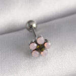 316L Çelik Gümüş Renk Zirkon Taşlı Çiçek Tragus Piercing