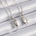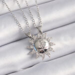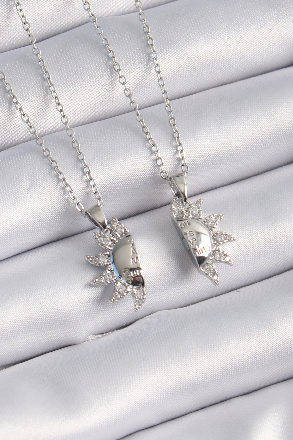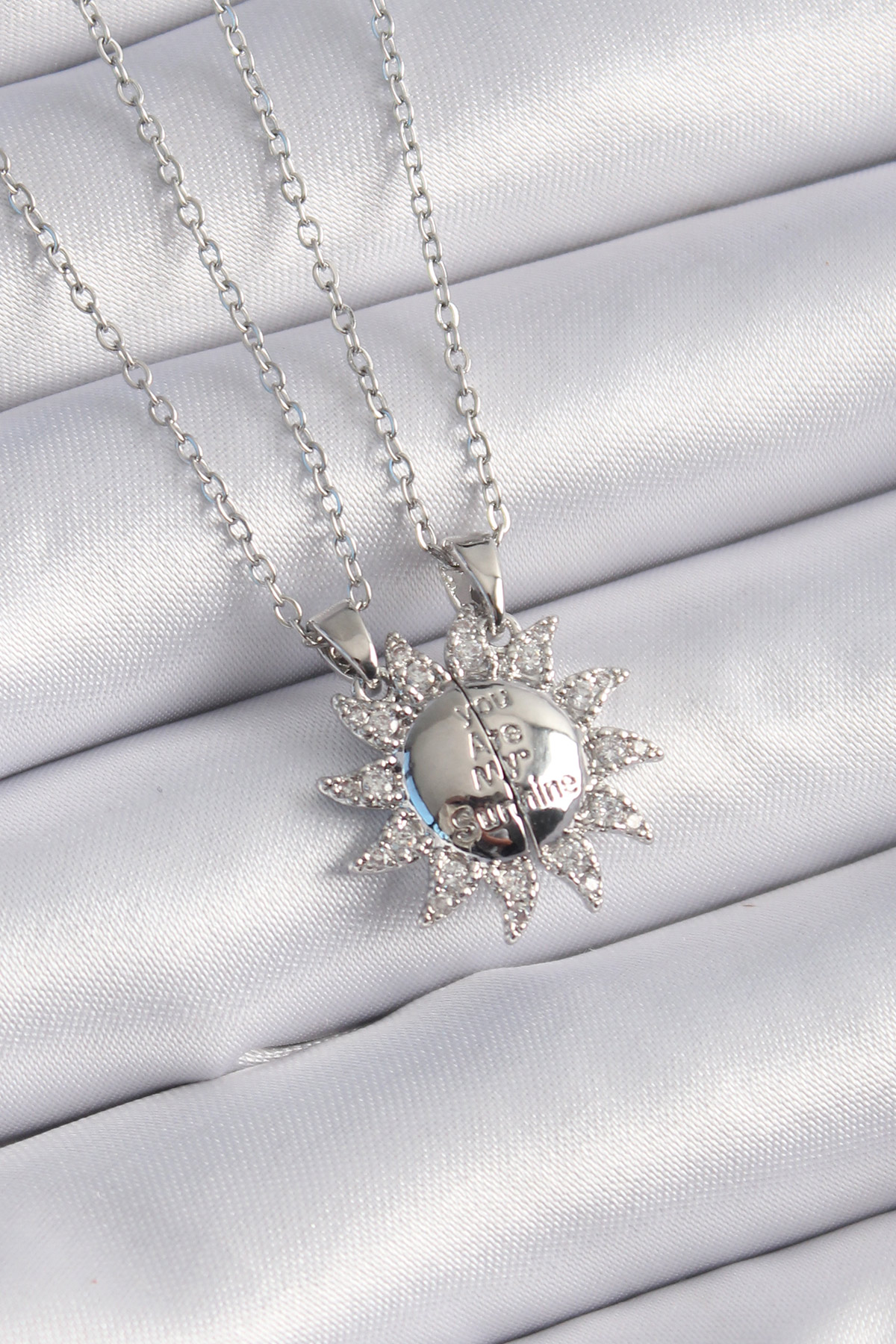 316L Çelik Gümüş Renk Zirkon Taşlı Güneş Model İşleme Yazı Detay Arkadaşlık Kolyesi