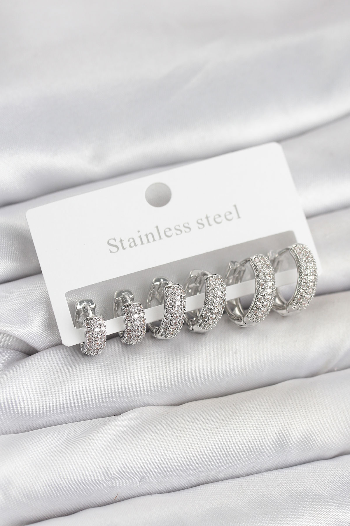 316L Çelik Gümüş Renk Zirkon Taşlı Halka Küpe Seti