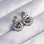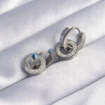316L Çelik Gümüş Renk Zirkon Taşlı İç İçe Geçmeli Oval Küpe