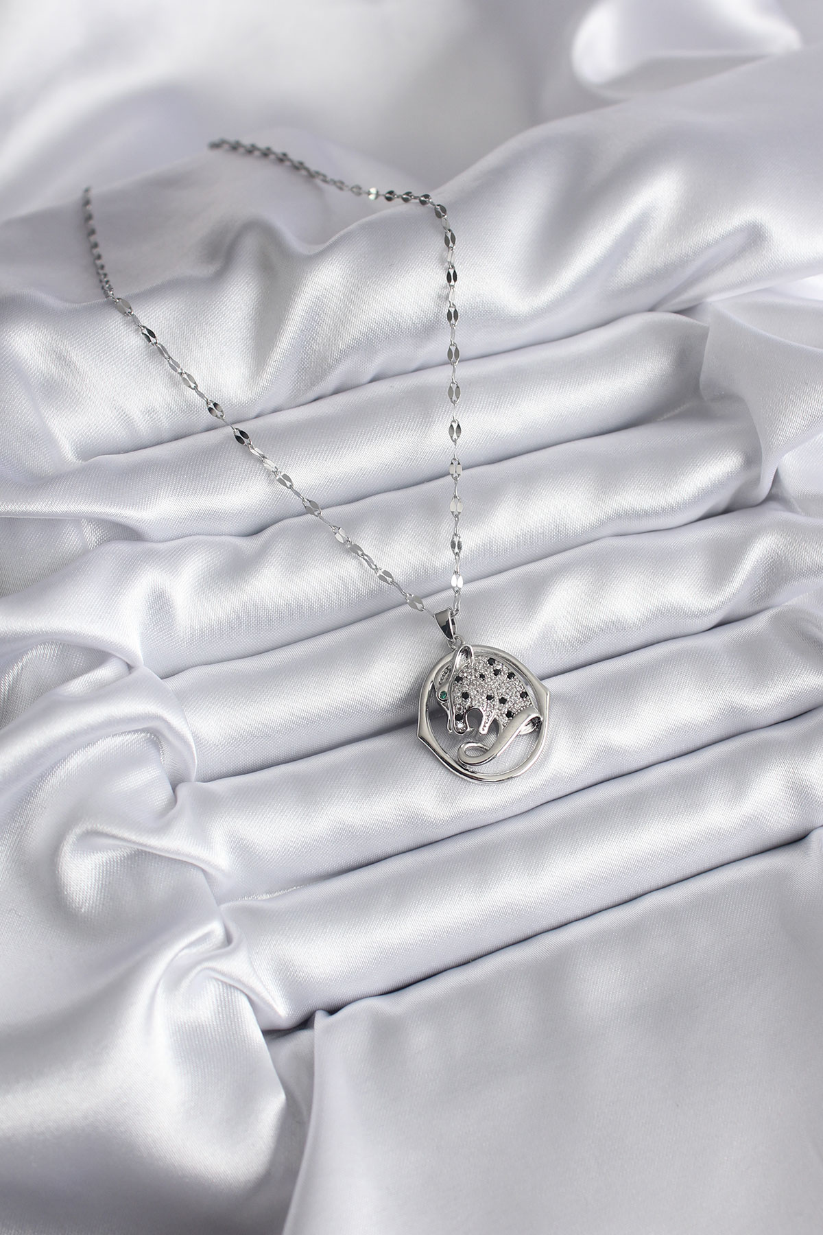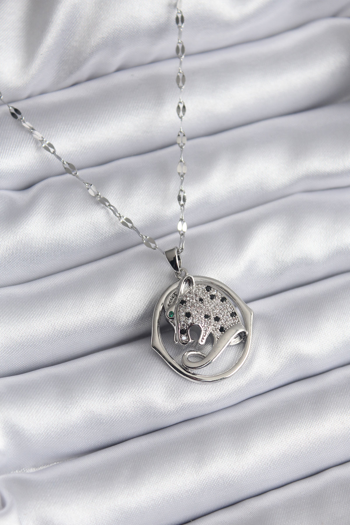 316L Çelik Gümüş Renk Zirkon Taşlı Jaguar Model Kadın Kolye