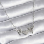 316L Çelik Gümüş Renk Zirkon Taşlı Kanat Kalp Model Kadın Kolye