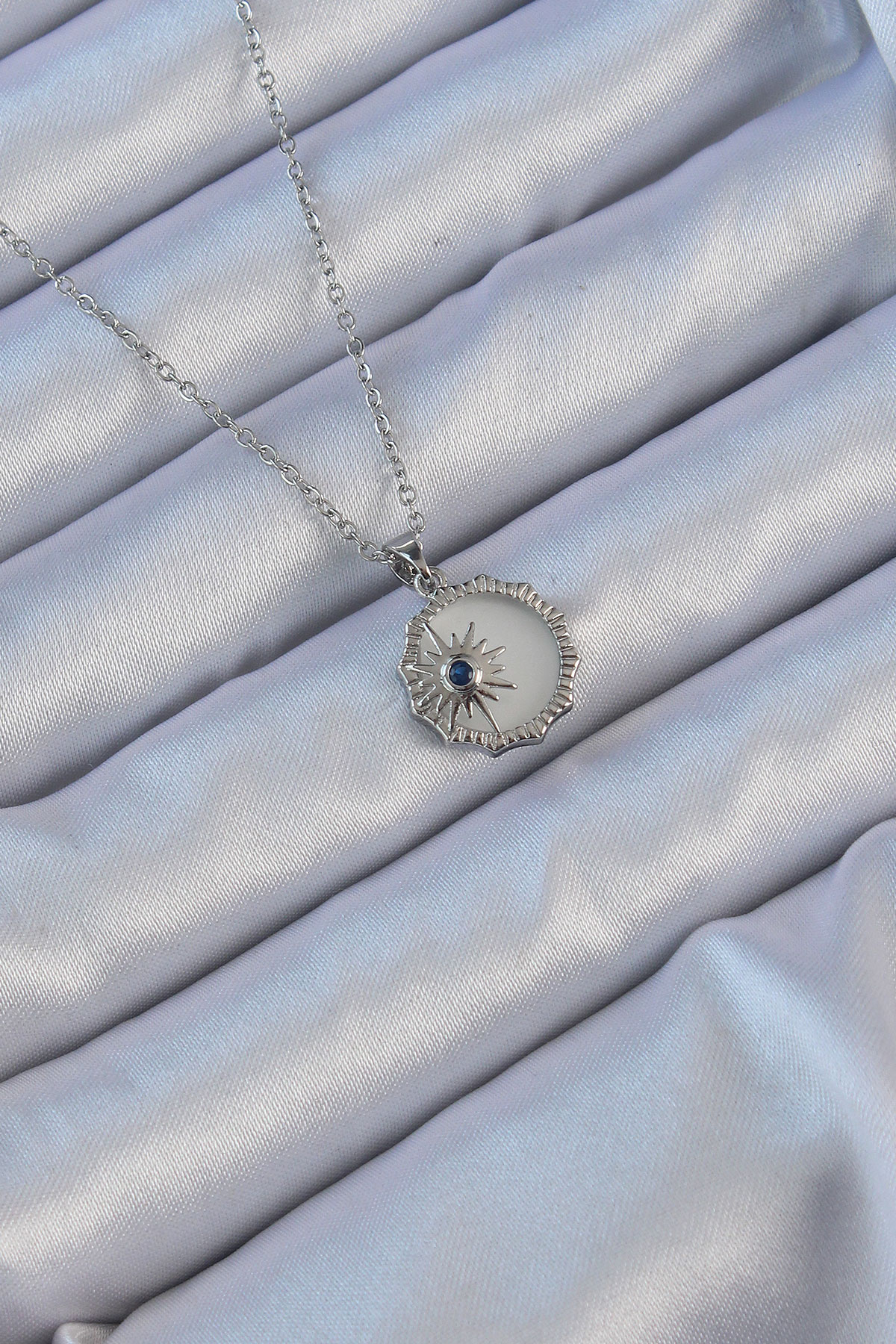 316L Çelik Gümüş Renk Zirkon Taşlı Mineli Kutup Yıldızı Kolye