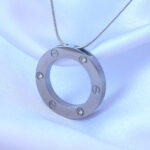 316L Çelik Gümüş Renk Zirkon Taşlı Model Kolye