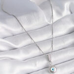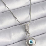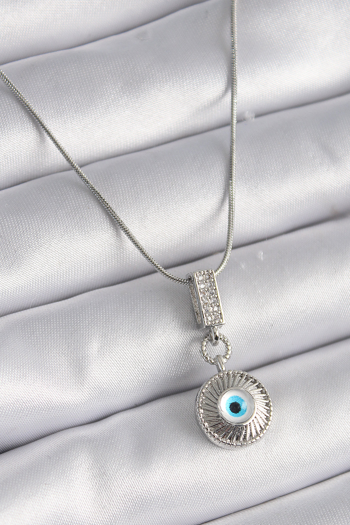 316L Çelik Gümüş Renk Zirkon Taşlı Nazar Boncuk Model Kadın Kolye
