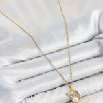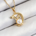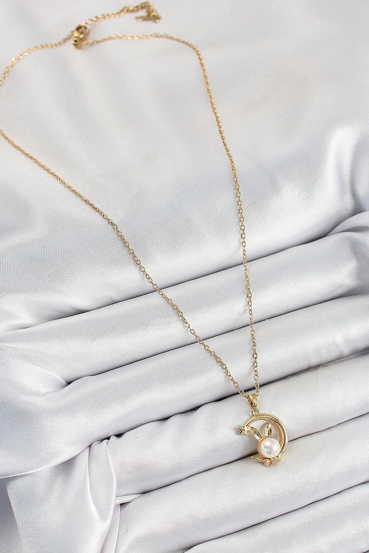 316L Çelik İnci Detaylı Hilal Tavşan Model Gold Renk Kadın Kolye