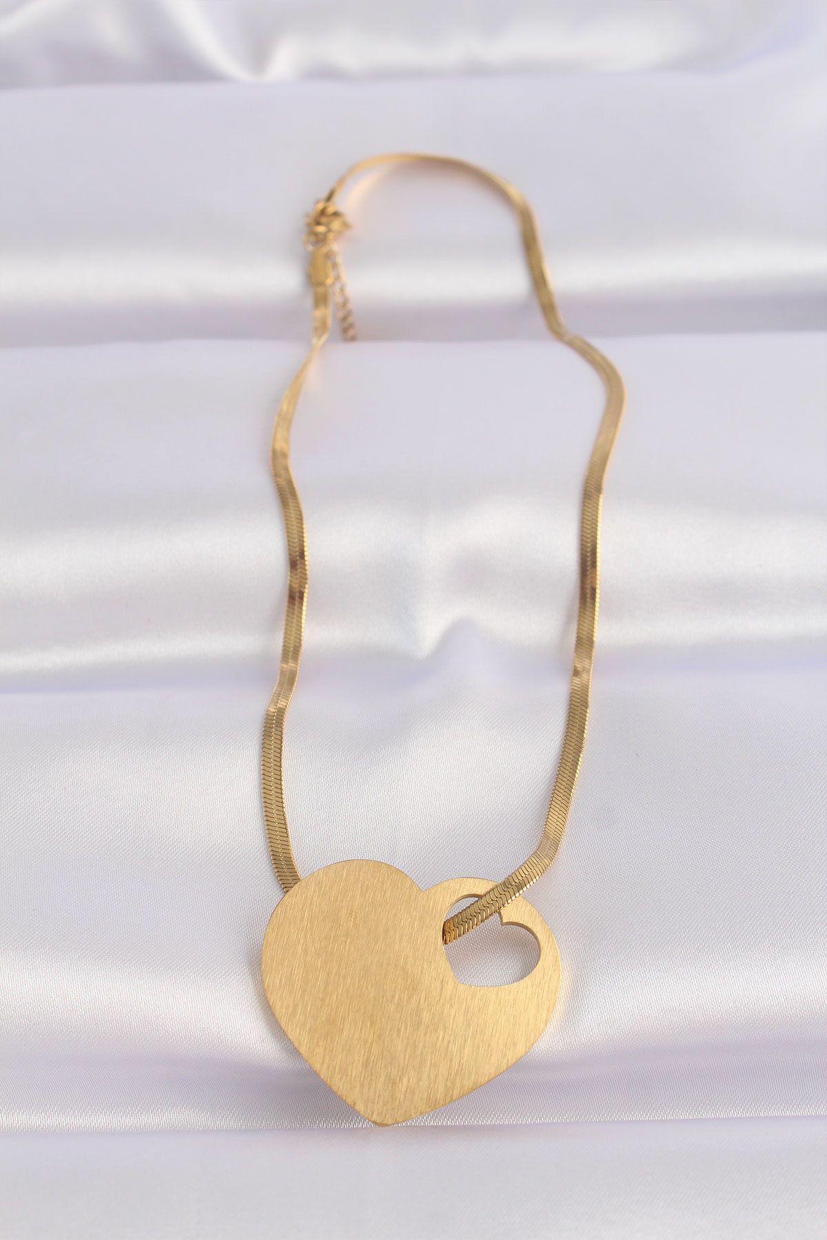 316L Çelik İtalyan Zincir Altın Renk Düz Plaka Kalp Kolye