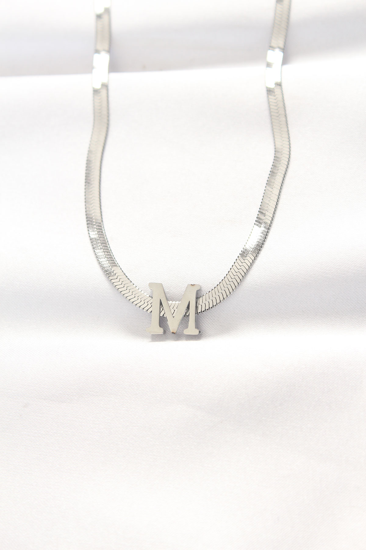 316L Çelik M Harfli Silver Renk İtalyan Zincirli Kolye